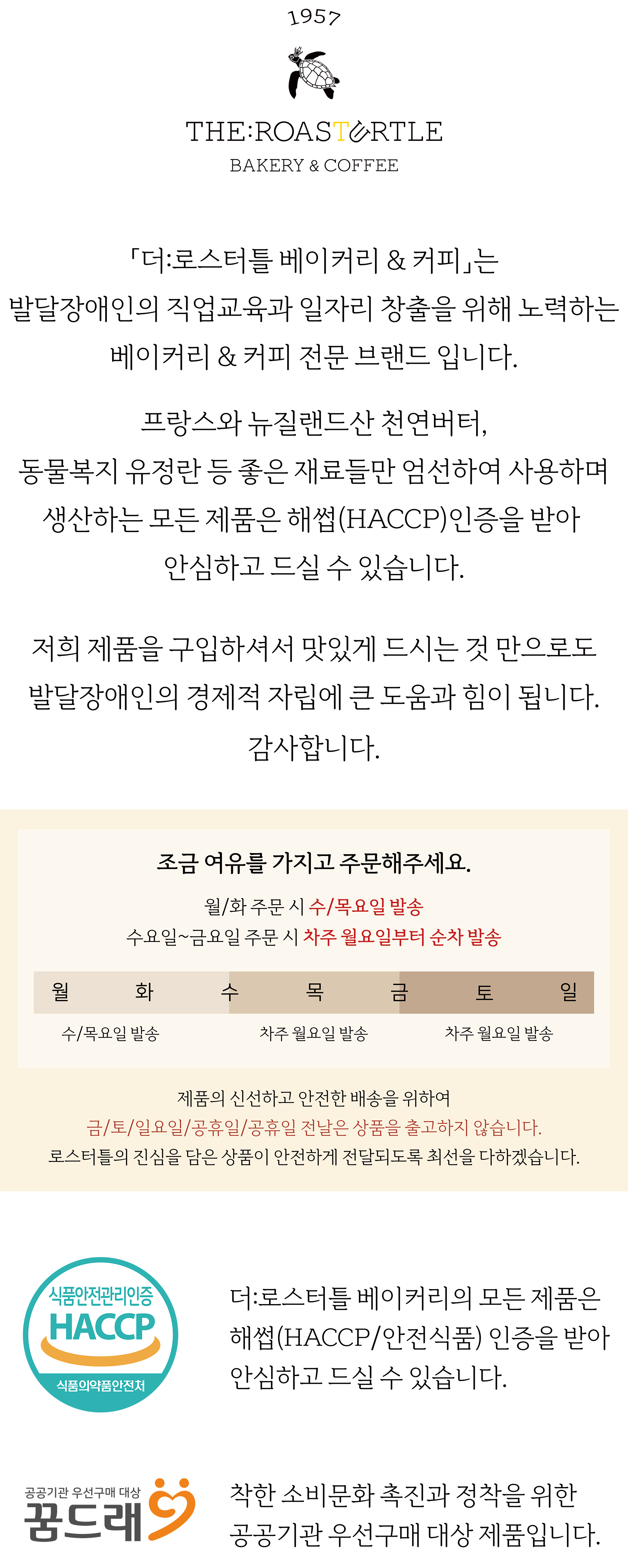 | 방문 수령 | 1. 결제 전 <방문 수령>으로 체크 2. <방문하실 날짜 기입> 필수 3. 매장 방문 <평일 09:00 - 17:00> 매장 주소 : 경기도 부천시 경인로 304번길 26 부천혜림직업재활시설 032) 611-7994 < 약 1주일 정도 여유 있게 주문해주세요> |